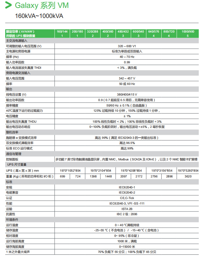 Galaxy 系列 VM 160kVA~1000kVA